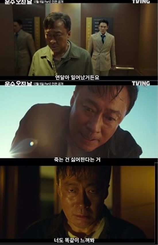 티빙 '운수 오진 날'에서는 평범한 택시기사 오택(이성민)이 잔혹한 연쇄살인마 금혁수(유연석)과 위험한 동행을 하게 되면서 오택의 처절한 복수가 시작된다.