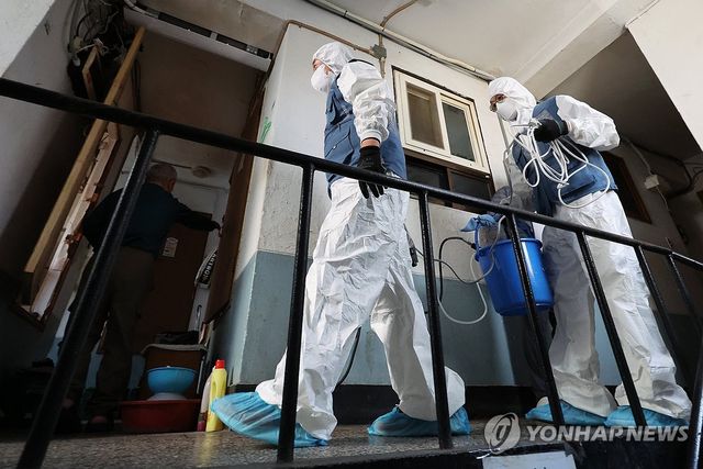 전국적으로 빈대 확산 우려가 커지는 가운데 지난달 9일 오전 서울 용산구보건소 관계자들이 빈대 방제 작업을 위해 동자동 쪽방촌 가구들을 방문하고 있다. / 연합뉴스