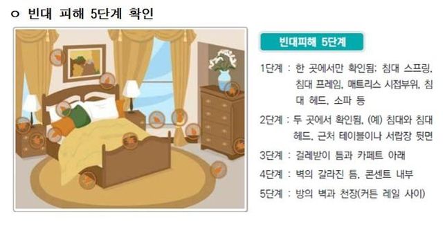 침대·매트리스·장판 등에 빈대, 탈피 흔적, 배설물 등이 있는지 살피고 빈대가 있는 것으로 의심되면 시설 전체를 점검한다.