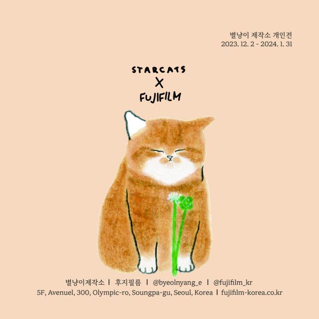 임훈 후지필름 코리아 사장은 “말랑말랑하고 귀여운 그림체로 사랑받고 있는 별냥이제작소 작가의 첫 개인전을 에비뉴엘점에서 전시하게 돼 기쁘다”며 “그림마다 다른 고양이들의 다양한 표정, 눈빛을 감상하며 작가의 어떤 이야기가 담겨 있을지 상상의 나래를 펼치길 바란다”이라고 말했다.