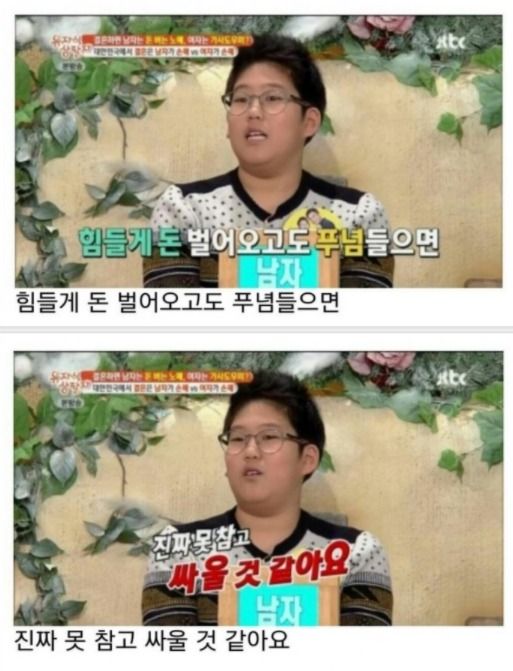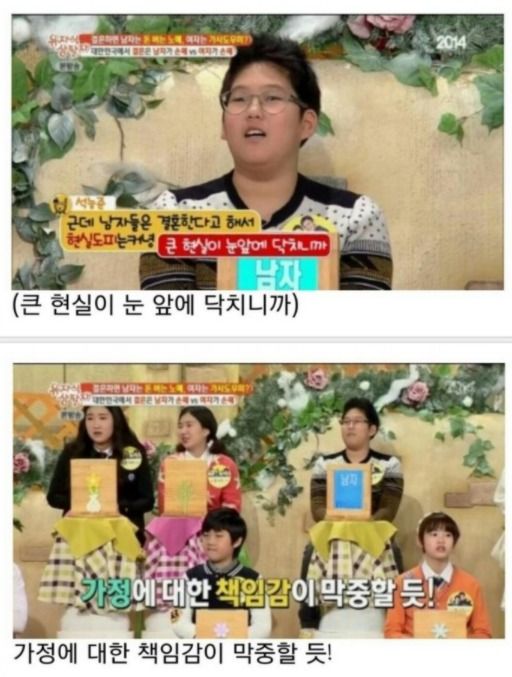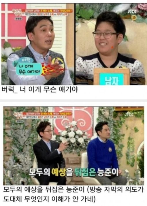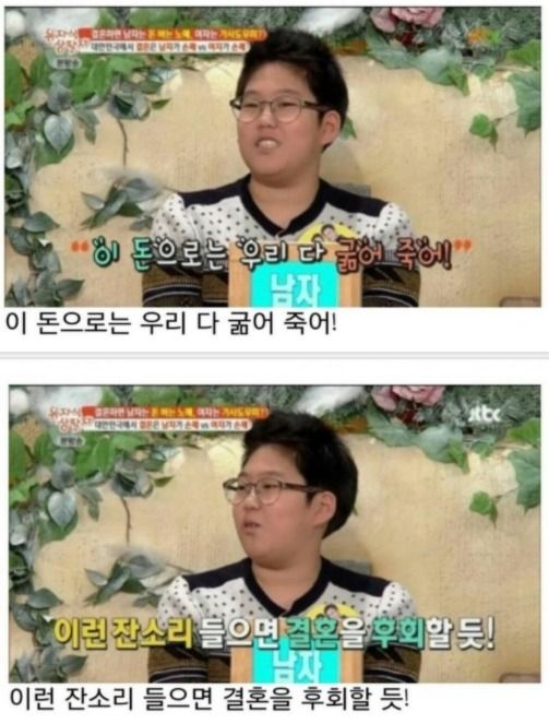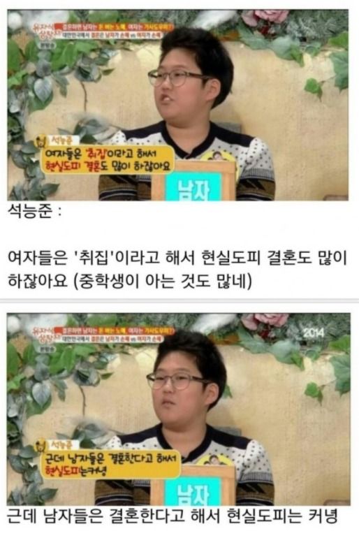 결혼은 남자가 손해라고 공개적인 예능에서 당당하게 말하는 능준이, 이에 아빠는 버럭 화를 내버립니다. 이제 중학생인 능준이는 왜 결혼은 남자가 손해라고 말을 했을까요?