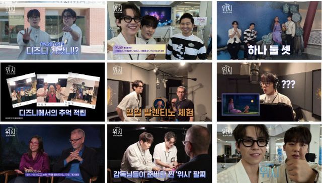 이어 이정하와 김도훈은 ‘위시’의 세계를 창조해낸 크리스 벅, 폰 비라선손 두 감독과 제니퍼 리 각본가와 만나 디즈니 애니메이션 스튜디오 투어의 방점을 찍었다. 이들은 두 감독과 각본가에게 엄청난 팬심을 드러냈는데 크리스 벅 감독은 “디즈니 애니메이션에 오신 걸 환영해요”라며 반가움을 전했다. 김도훈이 작품의 제목이 ‘위시’가 된 이유에 대해 묻자, 크리스 벅 감독은 “소원이 많은 디즈니 애니메이션의 공통 주제라는 걸 깨달았다”라며 “‘위시’라는 제목의 영화를 만들어야겠다는 확신이 섰다”라고 전했다. 또한 “2D와 3D를 합쳐서 만들게 된 이유가 무엇인지 듣고 싶다”라는 배우 이정하의 수줍은 질문에 폰 비라선손 감독은 “‘위시’는 디즈니 유산에 충실한 작품이어야 했다”라고 말하며, “펼치자마자 이야기 속 세계로 들어가는 동화책 느낌의 수채화 기법으로 향수를 불러일으킨다” 라고 전해 새로운 애니메이션 기법으로 관객들이 특별한 감정을 느꼈으면 한다고 덧붙였다.