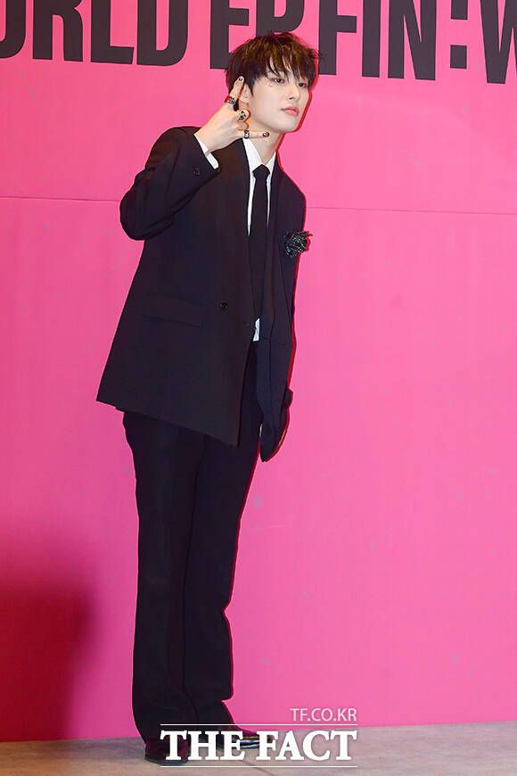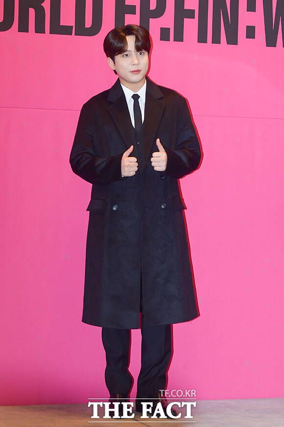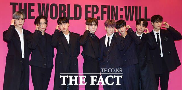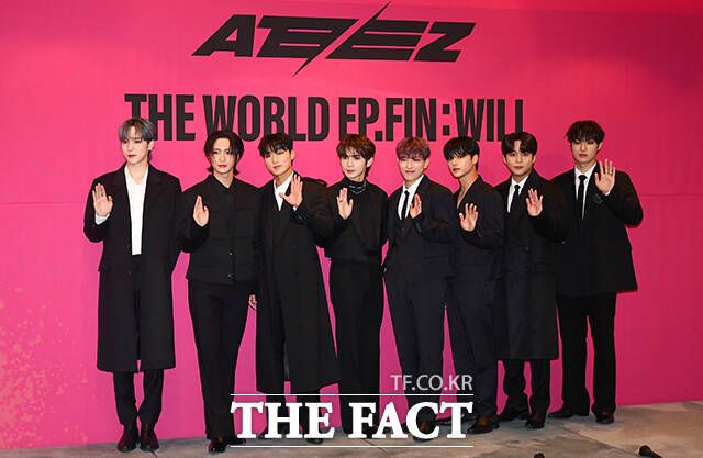 [더팩트ㅣ서예원 기자] 그룹 에이티즈의 윤호와 성화, 산, 여상, 홍중, 우영, 종호, 민기가 1일 오전 서울 강남구 안다즈 서울 강남에서 열린 정규 2집 'THE WORLD EP. FIN : WILL(더 월드 에피소드 파이널 : 윌)' 발매 기념 기자간담회에 참석해 포즈를 취하고 있다.