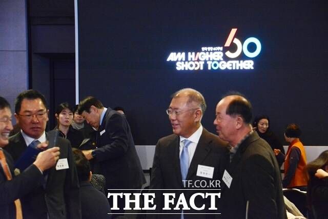 정의선 회장은 환영사에서 "한국 양궁 60주년을 맞이해 지난 발자취를 되돌아보고 앞으로의 미래를 그려 나가기 위해 오늘 모였다"며 "중장기적으로 우리 양궁은 대중에 보다 가까이 다가가는 노력을 계속해야 하고, 양궁이 우리 사회에 어떻게 기여할지도 함께 고민하고 실천해야 한다"고 강조했다.