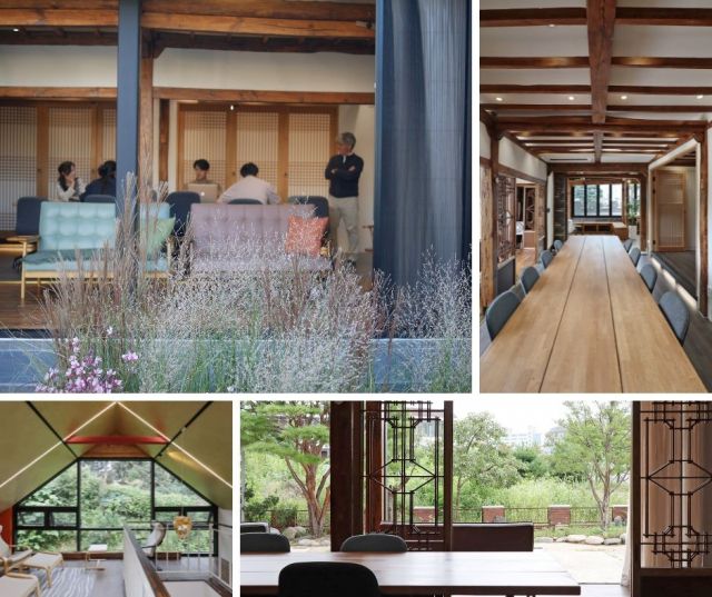 무심하게 보면 흔한 시가지 골목이다. 그렇게 주소지를 찾아 차를 꺾기도 쉽지 않을 듯한 좁은 골목 안쪽으로 발길을 내딛는 순간, 예상밖 풍광이 우리를 맞는다. 250평 대지 위에 소담히 자리한 한옥을 현대적 재료까지 버무려 새롭게 재해석한 공간, '스페이스닷 강릉'이다. 일반 투숙객을 대상으로 하지 않고 10~20명 규모의 기업 워크숍, 단체 행사 등의 목적으로 공간 대여 서비스를 제공하고 있다.