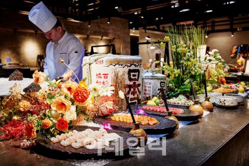 호텔에 묵는다면 놓칠 수 없는 게 식도락이다. 호텔 내 다이닝 뷔페&레스토랑인 ‘데메테르’에선 전채 요리부터 해산물·그릴 스테이크, 디저트까지 다국적 요리를 맛볼 수 있다. 뚝배기에 담긴 ‘된장찌개’는 내국인에겐 편안함을 주고, 외국인에겐 한국의 대표적인 음식을 알릴 목적으로 따로 준비해 모두에게 전해준다. 이곳의 랍스터, 연어 등 해수산물은 모두 해양관리협의회·수산관리협의회 인증을 받았다는 점도 특징이다. 국내 호텔 중에선 ‘콘래드 서울’과 함께 단 두 곳만 인증을 받았다.