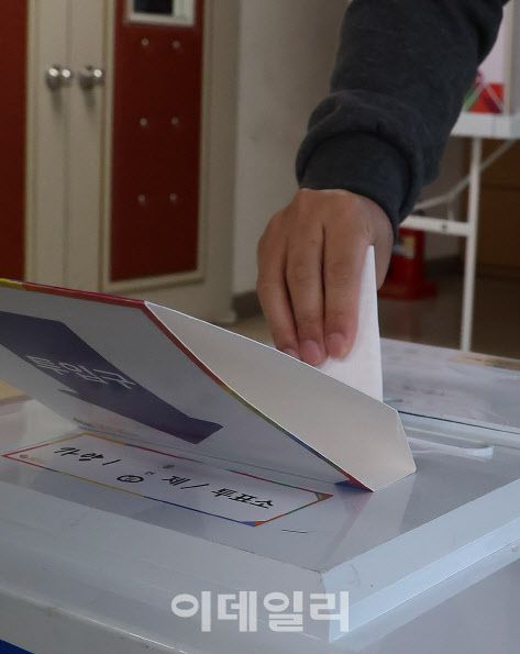 서울 강서구청장 보궐선거일인 지난 10월11일 서울 강서구 양천초등학교 체육관에 마련된 투표소를 찾은 구민들이 투표를 하고 있다.(사진=이데일리 방인권 기자)
