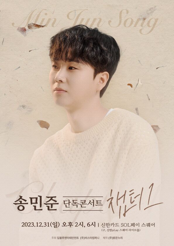 2일 밝은누리, 딥블루엔터테인먼트에 따르면 송민준의 첫 번째 단독 콘서트 ‘챕터 1’ 티켓은 전날 인터파크 티켓을 통해 예매가 시작된 이후 초고속으로 매진됐다.