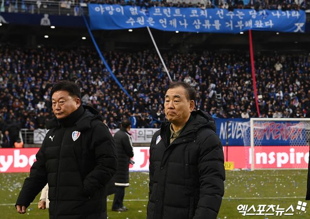 이준 대표이사를 시작으로 염기훈 감독 대행, 김보경과 오동석 단장의 릴레이 사과가 이어졌다. 수원의 레전드 염기훈 대행은 참담한 심정으로 눈물을 보이며 고개를 떨궜다.