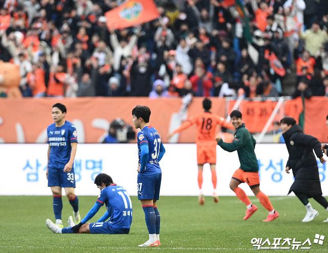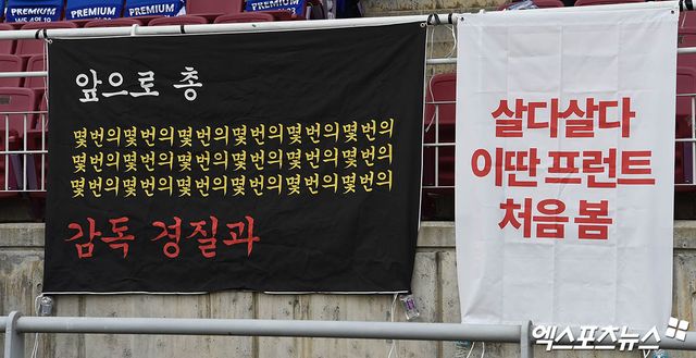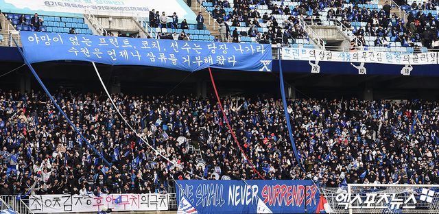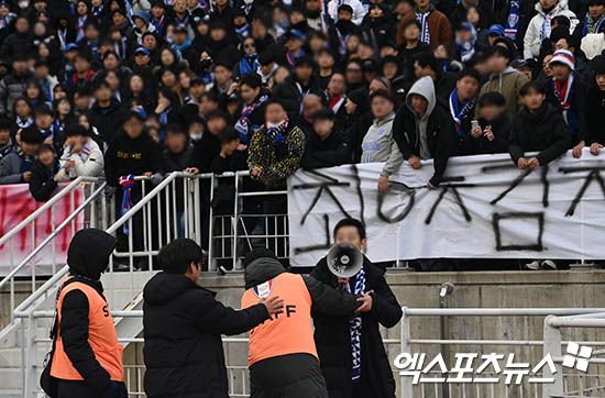 경기 내내 끊임 없이 응원가를 부르며 선수들을 북돋던 서포터즈석에는 얼음물을 끼얹은 것처럼 일순 침묵이 내려앉았다. 그도 잠시, 이내 관중석 곳곳에서 프런트를 향한 고성과 야유가 터져나오며 거센 분노가 일기 시작했다.