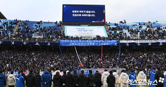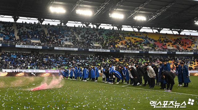 무거운 발걸음을 옮기며 그라운드를 떠나는 선수단 등 뒤로 띄워진 전광판에는 '변명의 여지가 없습니다. 진심으로 사과드립니다'는 말과 함께 '재창단의 각오로 다시 태어나는 수원 삼성이 되겠습니다'는 공허한 문장만이 번갈아 가면서 반짝일 뿐이었다.