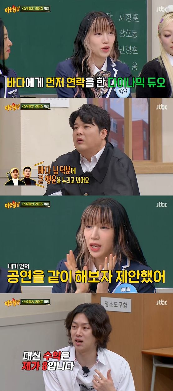 한편, 바다는 '다이나믹 듀오'(이하 '다듀')에게 먼저 연락이 왔다고 밝히기도 했다. '바다 님 덕분에 큰 행운을 누리고 있다' 했다고.