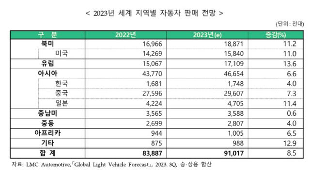 글로벌 자동차 시장은 반도체 부족 등 공급망 차질로 인한 병목현상 해소로 전년대비 8.5% 증가한 9102만대 수준으로 추정했다. 미국 11.0%, 서유럽 11.5%, 일본 11.4%, 러시아를 포함한 동유럽은 21.3% 등 지역별 시장 성장이 예상된다.