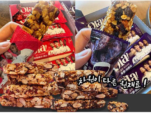 토트넘 선수들이 함께한 '올라 파이버바'는 포만감 100%를 느낄 수 있는 에너지바다. 풍부한 식이섬유, NO설탕, NO트랜스지방, NO 콜레스테롤 부담 없는 칼로리의 식물성 프로틴바로 포만감과 영양밸런스를 한 번에 잡았다. 밤늦게 먹어도 죄책감 들지 않는 저칼로리로 다이어트에 매우 좋다. (바로가기)