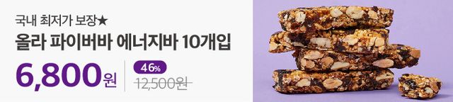 '올라 파이버바 에너지바(10개입)'는 현재 택샵에서 단 일주일간 46% 할인된 온라인 최저가 6,800원으로 구매할 수 있다. 편의점, 쿠X보다 훨씬 저렴하게 득템 할 수 있으니 이번 이벤트를 놓치지 말자.