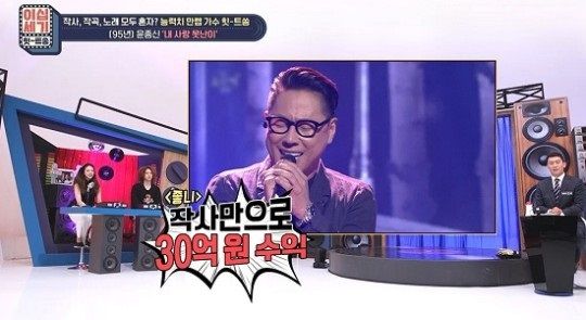 윤종신은 한 곡으로 30억의 수익을 얻었다고 밝혔다. 자작곡 약 500곡을 보유한 윤종신은 2017년 역주행시킨 '좋니'로 30억을 벌어들였다. 그는 "나는 1원도 안갖고 전부 회사에 줬다. 곡 하나 매출이 30억"이라고 전했다.