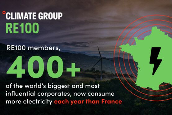 RE100은 재생에너지 100%의 약자로 글로벌 비영리단체 The Climate Group과 글로벌 환경경영 인증기관 CDP(Carbon Disclosure Project)를 중심으로 2050년까지 기업 사용 전력 100%를 재생에너지로 전환하자는 자발적 캠페인이다.