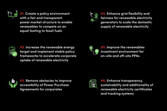 이 중 재생에너지 목표(2030년 21.6%) 상향을 통해 풍력·태양광 투자를 상향하는 등 의사 결정권자에게 촉진한 방향은 진전은 없었지만 정부는 몇몇 부분에서는 행동이 나타났다고 평가하면서 그 중 하나로 PPA에 존재하는 ‘불공정한 계약상의 의무를 제거한’ 조치를 꼽았다. 기존에는 PPA 계약을 체결하려는 기업은 송배전 비용을 부담해야해 PPA 가격이 화석연료보다 경쟁력을 잃게 만들었는데 이 장벽이 해소됐다는 것이다.