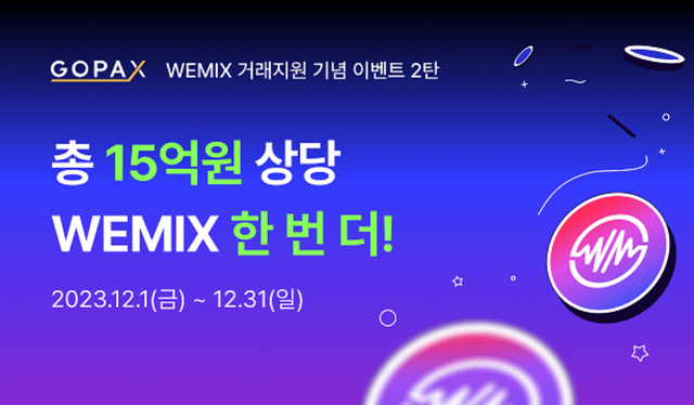 - 이벤트 내용: 거래량 순위에 따라 매일 8,500 WEMIX 지급(기간 중 총 263,500 WEMIX 차등 지급)