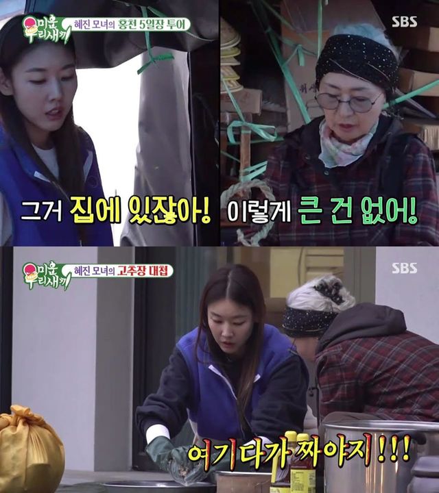 한혜진 어머니는 직접 고추장 담그기에 도전하는 딸을 돕기 위해 혜진 하우스에 출동했다. 어리바리하게 움직이는 한혜진이 답답했던 혜진 母가 버럭버럭 화를 내자, 한혜진 역시 “멍청하니까 그런다”라며 지지 않는 모습을 보여 폭소를 자아냈다.