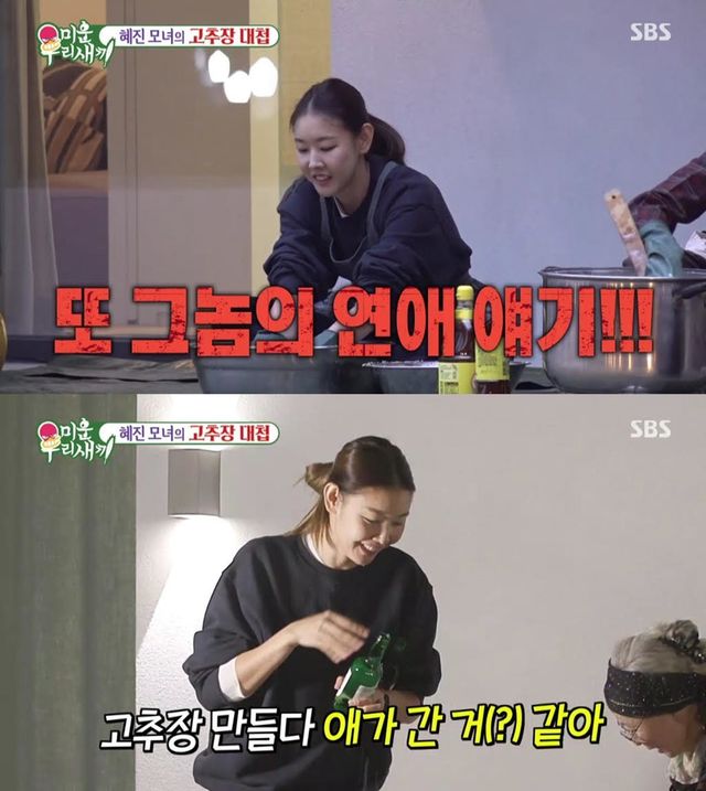 마지막으로 고추장에 소주를 넣으라는 어머니의 말에 소주를 들고 오던 한혜진은 “추운데 조금만 먹어도 될까”라며 소주를 마셨고, 혜진 어머니는 “고추장 만들다 애가 (맛이) 간 거 같다”라고 독설을 날렸다.