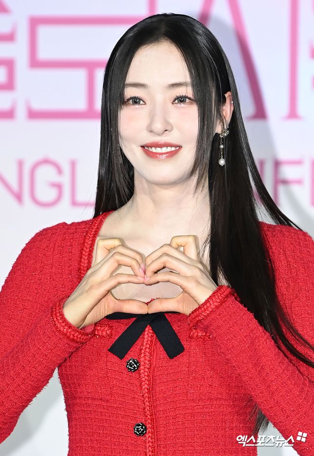 이날 '솔로지옥3' 제작발표회에 참석한 이다희가 포즈를 취하고 있다.