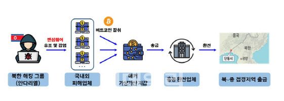 [이데일리 황병서 기자] 북한 해킹조직이 대공 무기 등 국내 방산기술을 탈취한 정황이 포착됐다. 랜섬웨어(데이터 복구 조건으로 거액을 요구하는 프로그램) 대가로 받은 비트코인을 자금 세탁한 후 북한으로 송금한 정황도 드러났다. 경찰은 자금 세탁책으로 의심되는 외국인 여성을 입건하는 등 수사를 확대하고 있다.