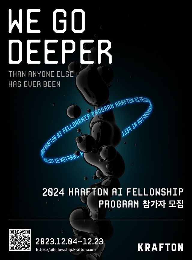 크래프톤의 인공지능 인재 양성 프로그램 크래프톤 AI 펠로우십(KRAFTON AI Fellowship Program) 2기가 대상을 모집한다.