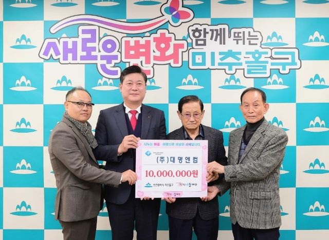 [파이낸셜경제=김영란 기자] 인천 미추홀구(구청장 이영훈)는 4일 ㈜대명엔컴(회장 송영식)으로부터 사회복지시설 지원을 위해 써달라고 (사)학산나눔재단을 통해 후원금 1천만 원을 전달받았다.