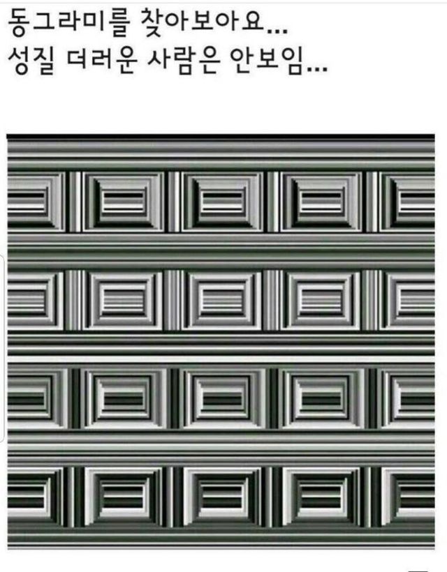 사각형 사이의 중앙 세로방향을 유심히 보면 동그라미가 보인다고 한다.