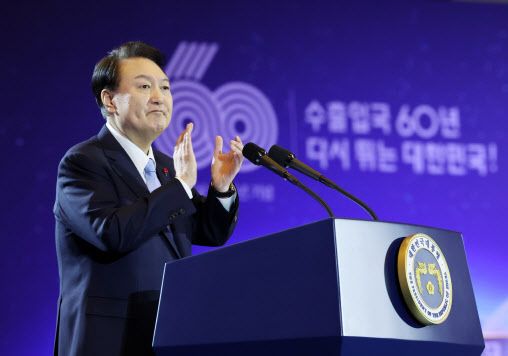 윤 대통령은 이날 오전 서울 강남 코엑스에서 개최된 ‘제60회 무역의 날 기념식’ 행사에 참석해 어려운 여건에서도 1년여 만에 수출플러스 전환에 기여한 무역인들의 노고를 격려하며 이같이 밝혔다고 대통령실이 전했다.