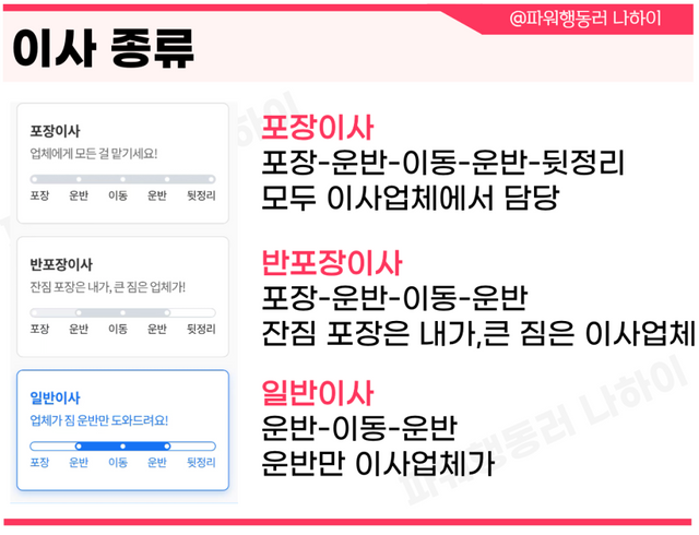 1. 이사 종류 : 포장이사 반포장이사 일반이사