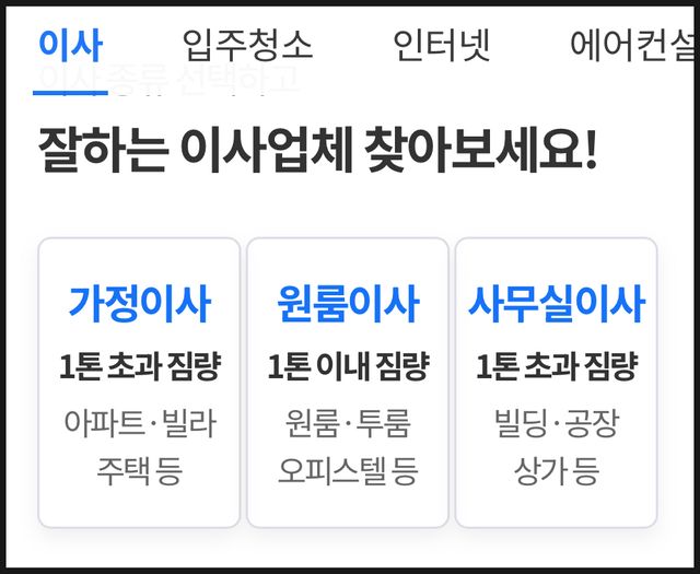 이사 업체를 찾을 때 어떤 종류의 이사를 할지를 선택하게 됩니다.