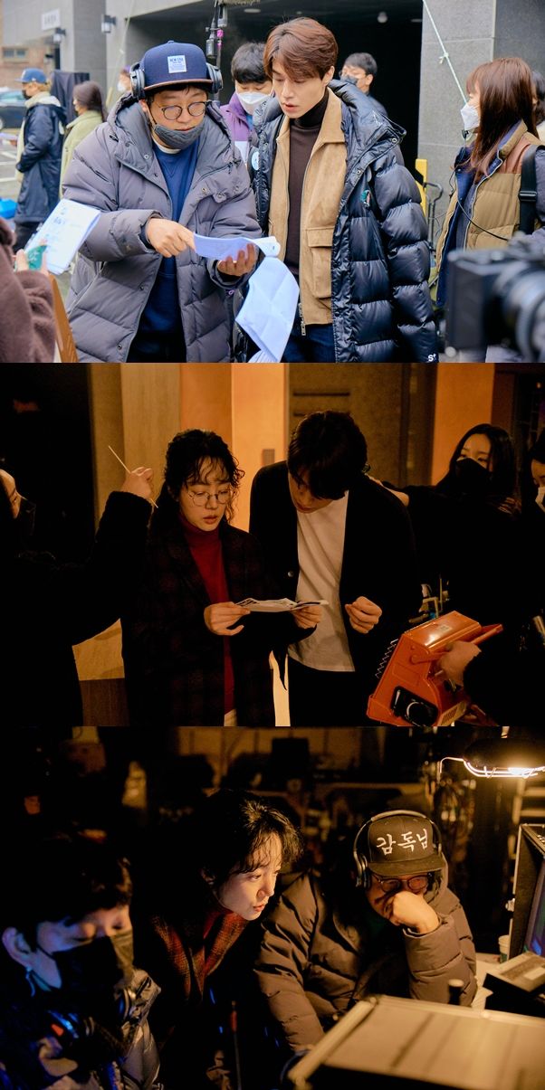 공개된 비하인드 스틸은 '싱글 인 서울'의 촬영 현장과 따듯한 분위기를 담았다. 먼저, 영호 역의 이동욱이 "정말 편한 형처럼 대해줘서, 저도 배우로서 캐릭터에 대한 고민이 있을 때마다 쉽게 논의할 수 있다"고 말한 것처럼, 대본을 바라보며 서로의 의견을 교환하는 이동욱, 박범수 감독의 모습을 통해 훈훈했던 현장 분위기를 느낄 수 있다.