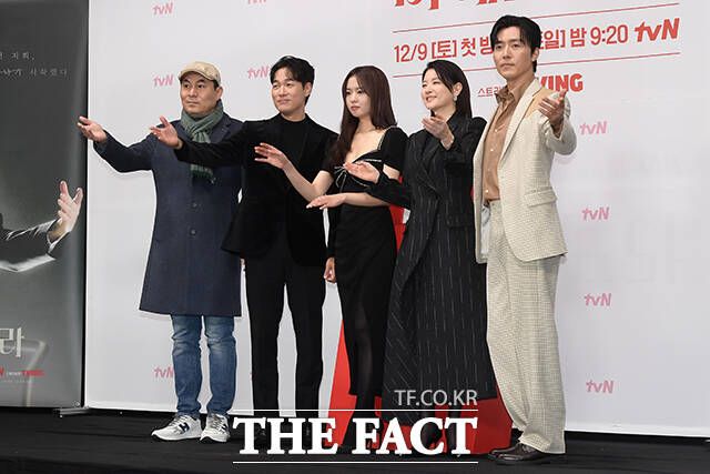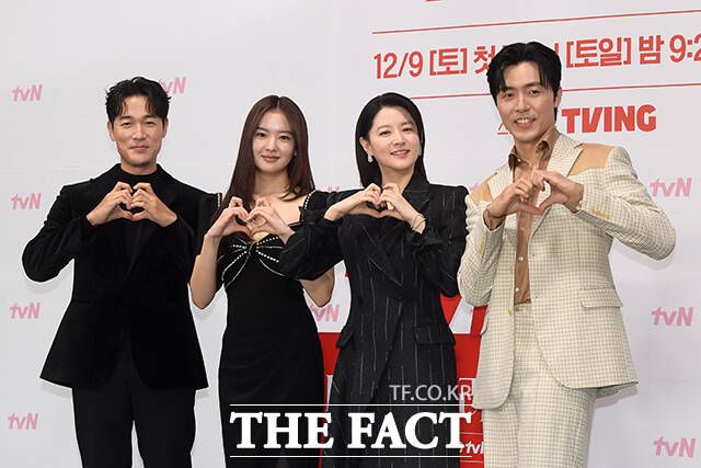 [더팩트ㅣ서예원 기자] 배우 김영재와 황보름별, 이영애, 이무생이 6일 오전 서울 구로구 라마다 신도림 호텔에서 열린 TvN 새 토일드라마 '마에스트라' 제작발표회에 참석해 포즈를 취하고 있다.
