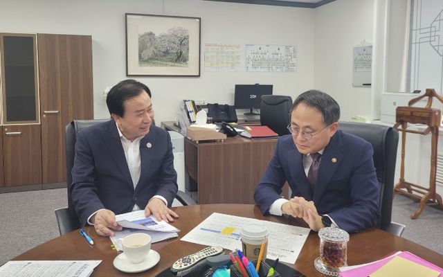 | ▲ 박홍률 목포시장이 고기동 행정안전부 차관을 만나 특별교부세 지원을 건의했다. 사진 오른쪽 : 고기동 행정안전부 차관 / 목포시 제공 |