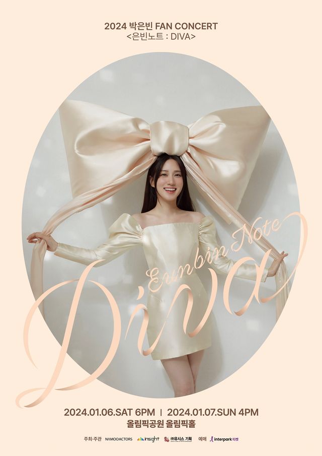 한편, '2024 박은빈 FAN CONCERT '은빈노트: DIVA''는 2024년 1월 6일 오후 6시, 7일 오후 4시 이틀간 올림픽공원 올림픽홀에서 열린다.
