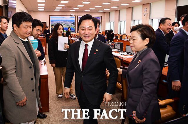 이날 회의를 마친 뒤 원희룡 장관은 여야 의원들을 비롯해 국토교통위원회 관계자들과 밝은 표정으로 '작별 인사'를 하며 회의장을 나섰다.