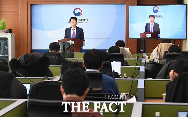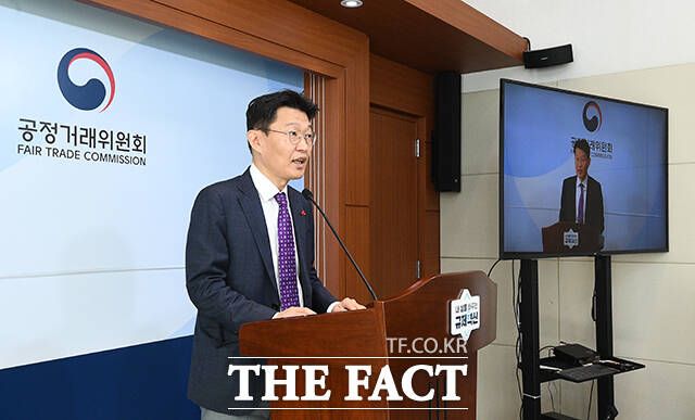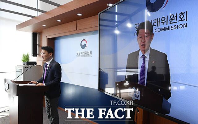 [더팩트ㅣ세종=이동률 기자] 김문식 공정거래위원회 기업거래결함심사국장이 7일 오전 세종시 정부세종청사에서 (주)씨제이올리브영의 대규모유통업법 위반행위 제재 결과를 발표하고 있다.