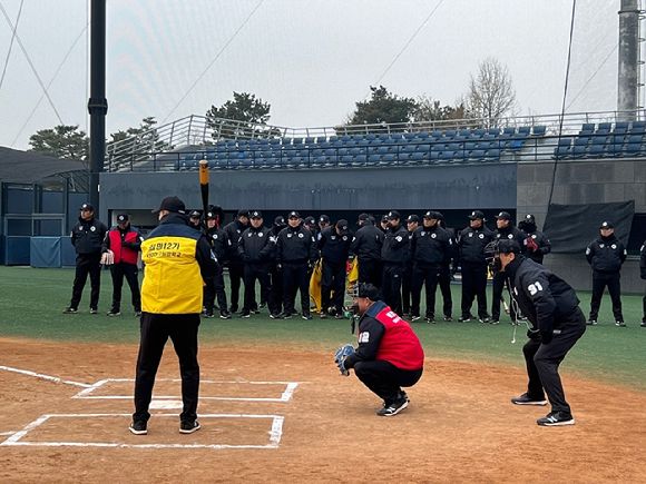 허구연 KBO 총재는 지난 6일 KBO 심판위원회가 1차 동계훈련을 하고 있는 두산 베어스파크를 방문했다. 사진은 훈련 중인 KBO 심판위원들. [사진=한국야구위원회(KBO)]