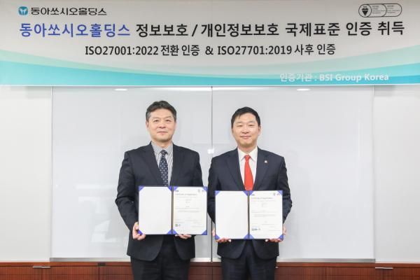 [폴리뉴스 조재만 기자] 동아쏘시오홀딩스(대표이사 사장 정재훈)는 BSI(British Standards Institution, 영국왕립표준협회)로부터 신규버전의 정보보호 경영시스템 국제표준인 ‘ISO/IEC 27001:2022’ 전환심사 및 개인정보보호 경영시스템 국제표준인 ‘ISO/IEC 27701:2019’ 사후심사를 통과했다고 7일 밝혔다.