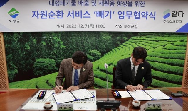 이날 업무 협약은 대형폐기물 배출 및 중고 재활용 순환 서비스를 활성화하기 위해 이뤄졌으며 보성군은 2024년 1월부터 애플리케이션 또는 홈페이지로 대형폐기물을 간편하게 배출 신청하는 ‘빼기’ 서비스를 도입할 예정이다.