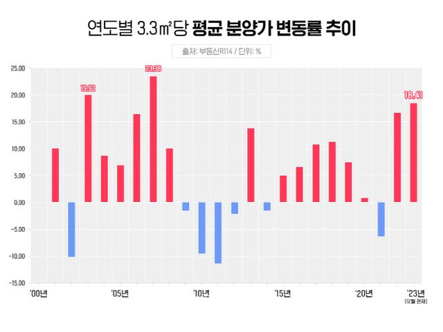 전년 대비 분양가 약 18.4% 기록 2007년 이후 16년만 최고 기록