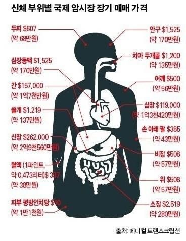 신체 부위 별 국제 암시장 장기 매매 가격은 얼마일까?