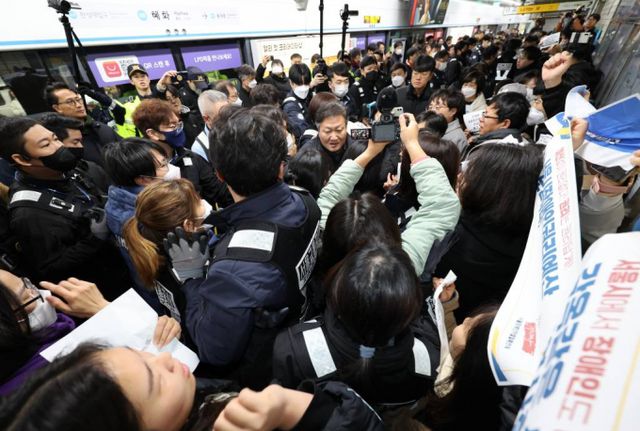 현행범 체포된 이들은 이날 오전 8시 서울지하철 4호선 혜화역 승강장에서 장애인 이동권 보장 기자회견을 진행하면서 경찰과 서교공의 퇴거 요구에 응하지 않은 혐의를 받는다. 양측의 충돌이 발생하자 서교공 측은 오전 8시13분부터 오전 8시37분까지 하행선 방향 열차들을 무정차 통과시켰다. 이는 서교공이 전장연 시위 원천 봉쇄를 선포한 이후 첫 무정차 통과다.