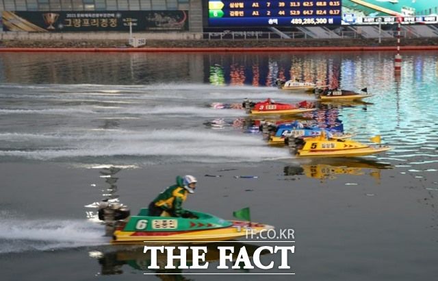 지난 2021년 그랑프리경정 결승전에 출전한 선수들이 플라잉스타트로 경주를 출발하고 있다./경륜경정총괄본부