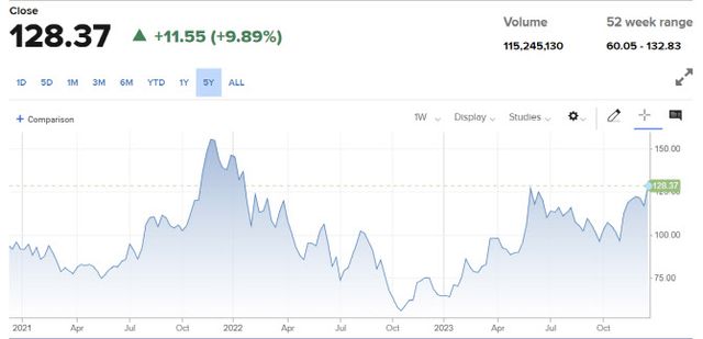 7일 마켓포인트에 따르면 이날 AMD 주가는 전일대비 9.9% 급등한 128.37달러에 마감했다. 최신 AI칩 공개 효과다.
