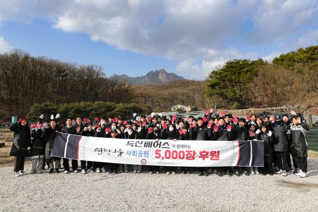 연탄 나눔 행사는 연말을 맞아 저소득 소외계층에 사랑을 전하는 사회공헌활동의 일환이다. 이번 행사에는 허경민, 양석환 등 선수단 24명과 40명의 팬이 서울시 도봉구 무수골 일대 주민들에게 연탄 5,000장을 직접 배달했다.