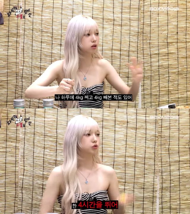 이어 카리나는 자신이 먹는 양에 놀란 영지를 보고 "나 완전 고무줄이다. 살이 잘 안찌는 체질이 아니다. 하루에 4kg을 찌고 4kg을 뺀 적도 있다"고 솔직히 밝혔다.