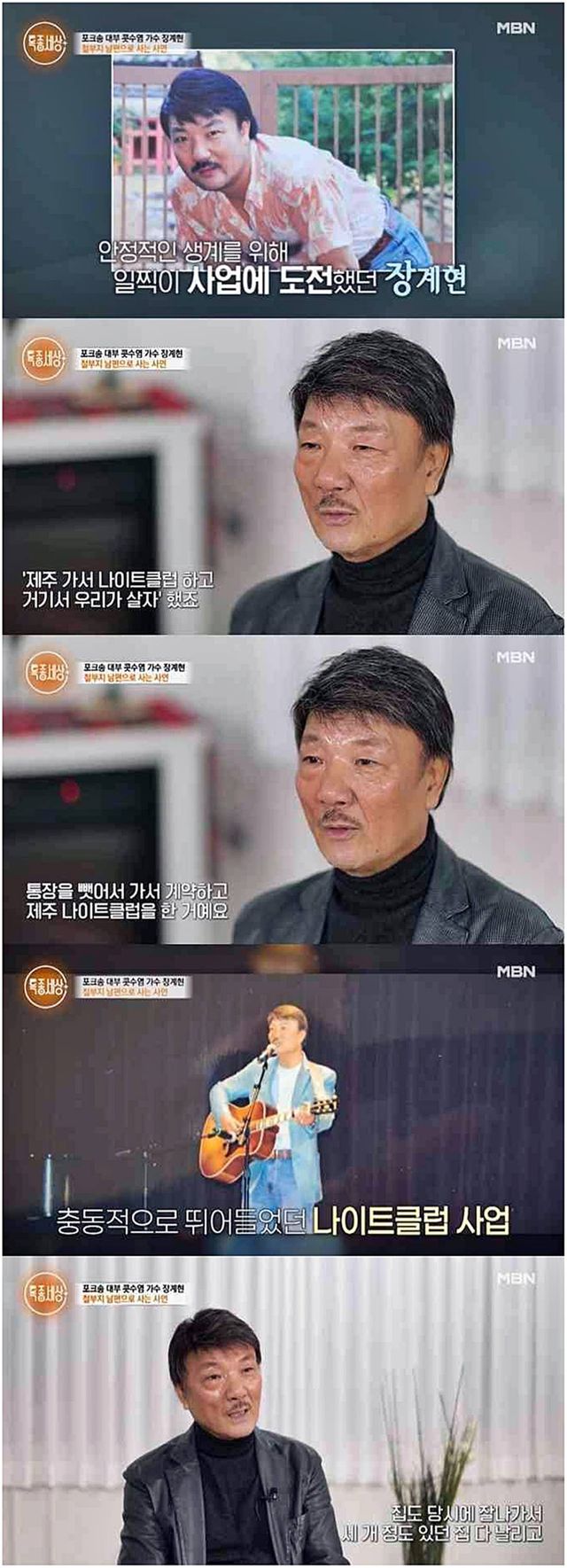 장계현은 나이트클럽을 한 계기에 대해 "제주에 나이트클럽 섭외가 와서 개업 날 노래를 하러 갔다. 그런데 클럽이 너무 예쁘더라. 제주도를 처음 가봤는데 얼마나 좋았겠나"라고 운을 뗐다.